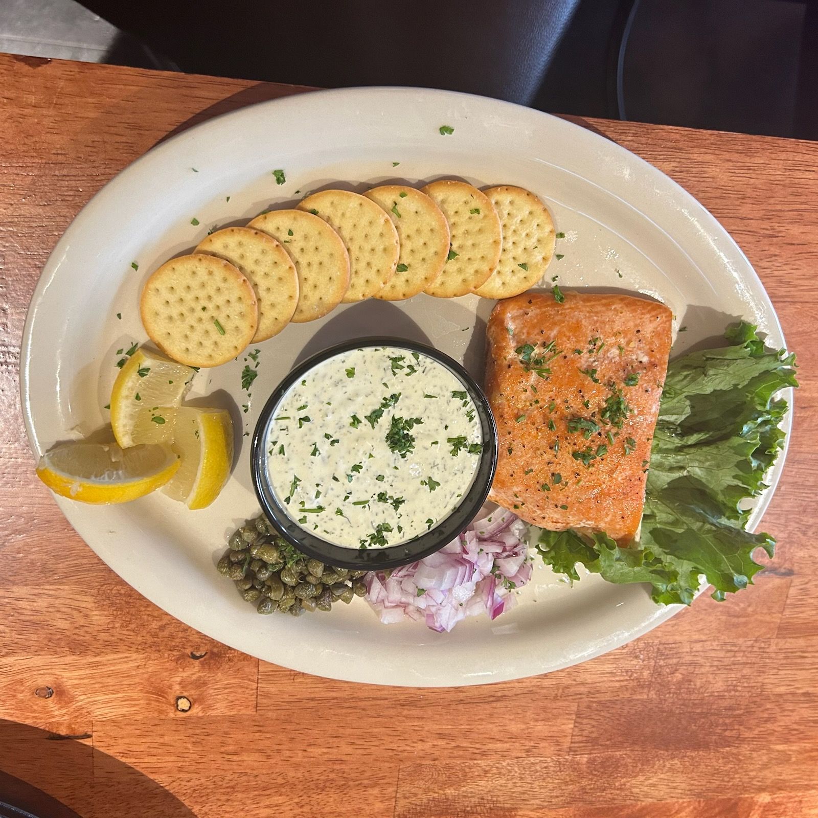 You order from a curated selection that balances lighter seafood with heartier grill items, so whether you're hungry or just picking at something while you talk, the menu accommodates both. The kitchen preps these items with the same timing and care as the full dinner menu, meaning your shrimp comes out properly seared and your burger doesn't sit under a lamp. The servers know the rhythm of Happy Hour and won't rush you out, but they also won't leave you waiting when you're ready to order or pay.